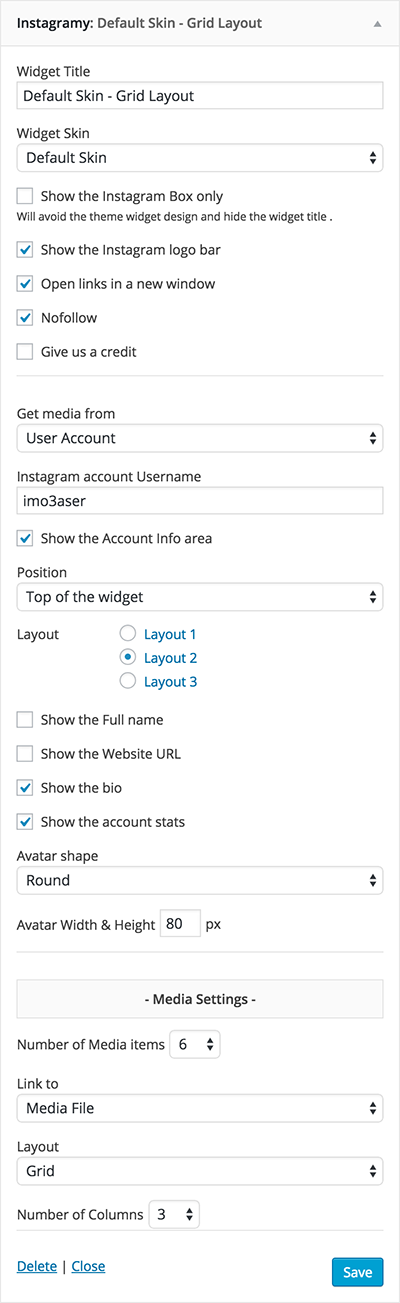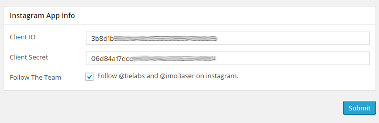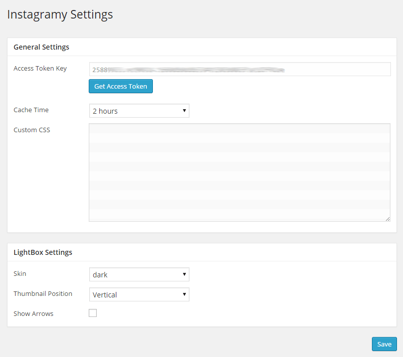 From Instagramy settings page you can set the Instagram App Access Token Key , Cache time and Custom CSS Codes .
