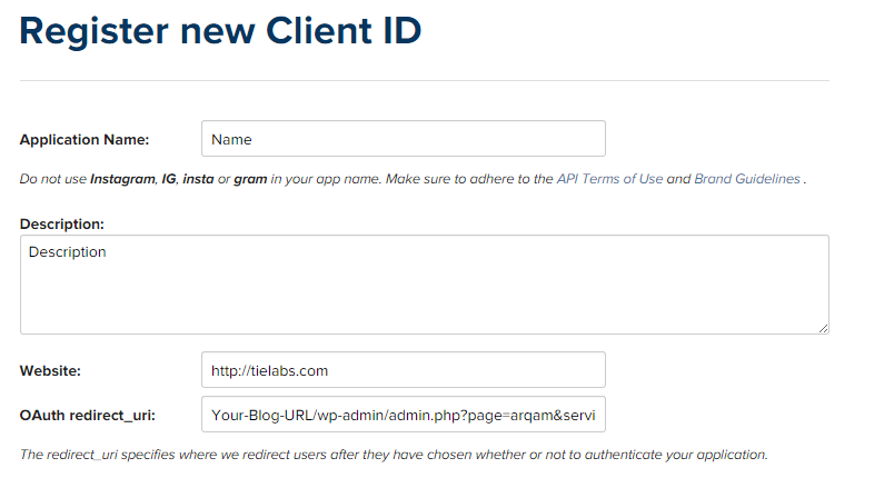 - OAuth redirect_url ( Change Your-Blog-URL with your WordPress Blog URL )